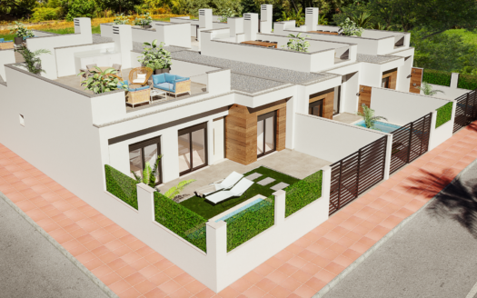 Villas with private swimming pool, terraced areas and large solarium. 3 bedrooms with fiited wardrobes and 2 or 3 f